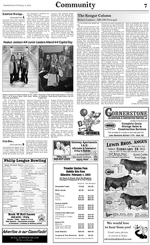 Concluding this lengthy column, we are excited for our students to compete this week at the state one- act competition, but alas, we do hold some regret. This will be Mrs. Shuck’s last year as a director of our wildly successful one-act competition. Hopefully, though, she can look back on her career in developing the ‘A’ in the STEAM curriculum of Kadoka Public and know her work has affected many and will need to be replaced in some way to realize the continued success of our district fully. Thank you, Mrs. Shuck. We are excited to see your students’ last performance and recognize its significance in our success.